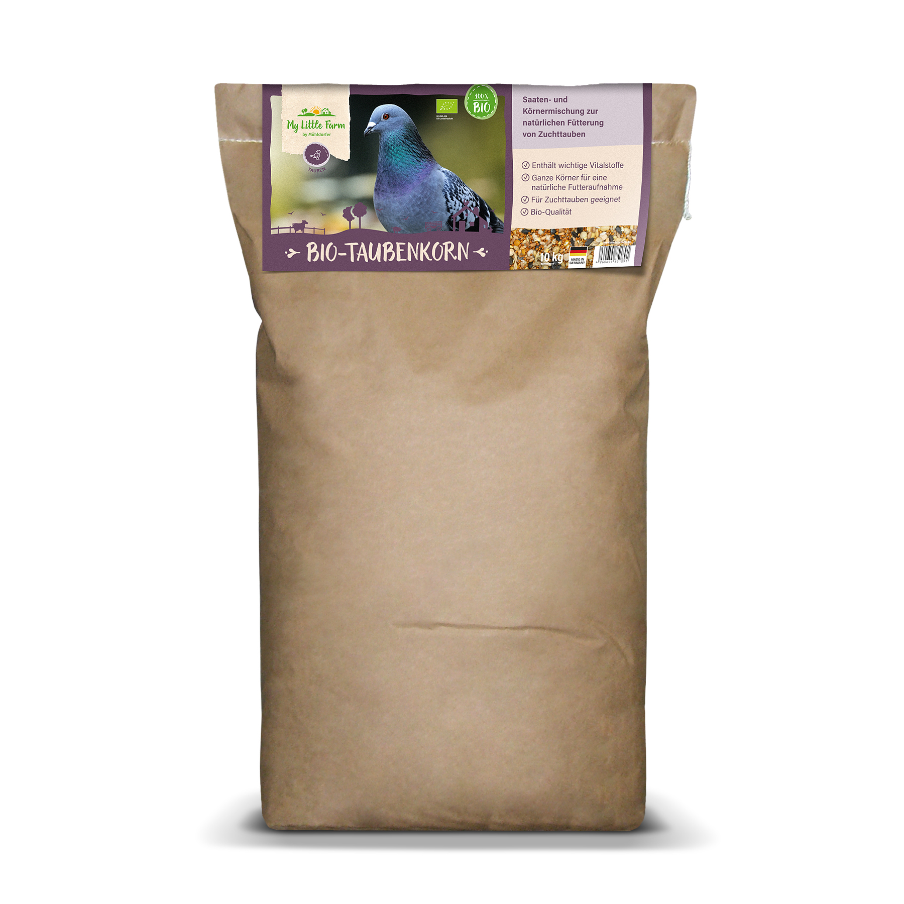 Das My Little Farm Bio-Taubenkorn deckt den Grundbedarf an Nährstoffen und Mineralien dauerhaft ab und verwendet dabei ausschließlich bestes Korn aus biologischem Anbau. Ein Hauptaugenmerk in der Zusammensetzung des Bio-Taubenkorn wurde vor allem auf die reichhaltige Mischung der Körner gelegt: sie enthält, neben wichtigen Aminosäuren, auch Vitamine und Mineralien zur Gesunderhaltung der Tauben.