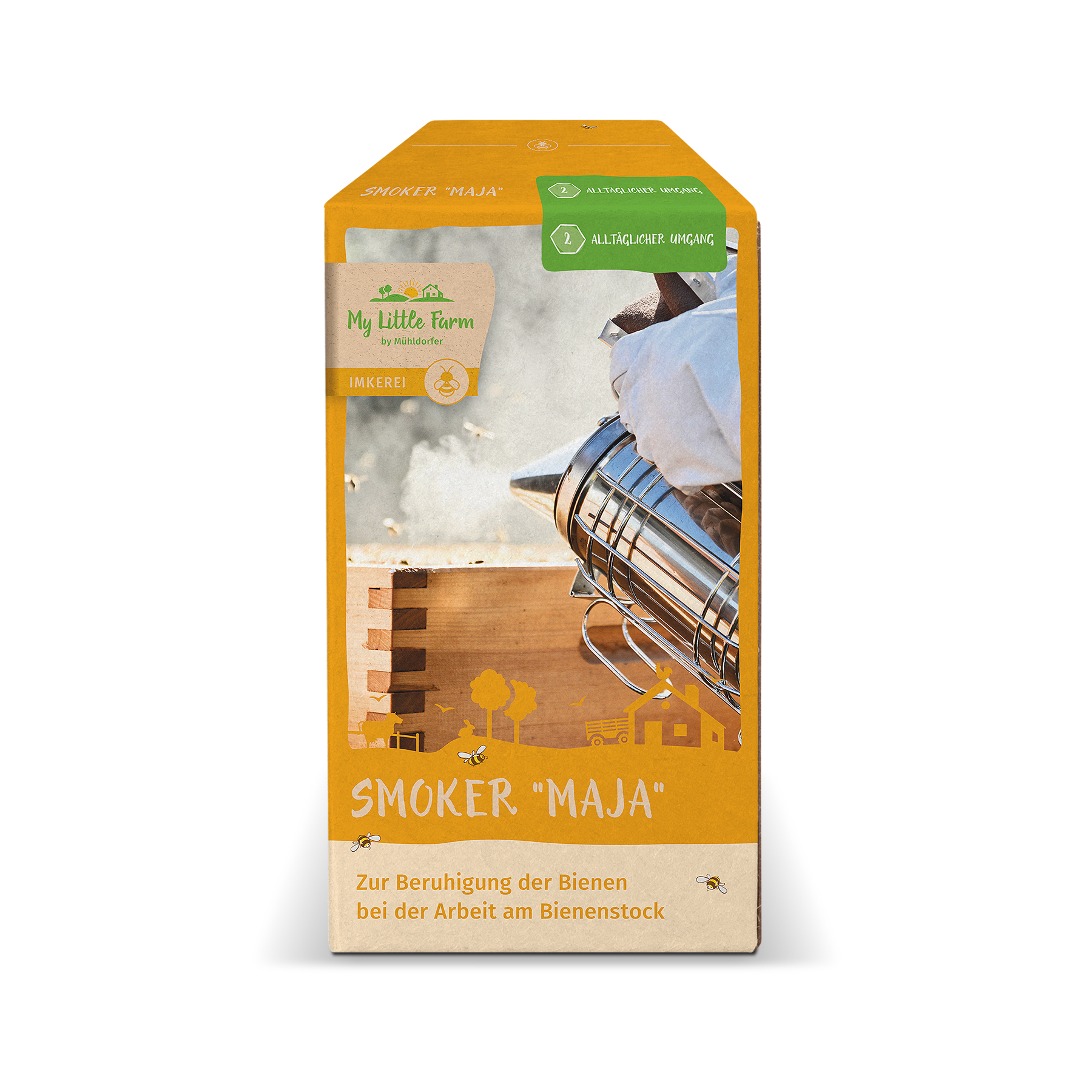 Der Smoker Maja von My Little Farm mit seinem rostfreien Edelstahlkessel (8,5 cm) sorgt schnell und zuverlässig für Rauch, um die Bienen zu beruhigen.