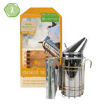 Das Rauchgerät – welches zur Grundausstattung für jeden Imker gehört – verfügt über ein Innenrauchgitter, ein Außenschutzgitter mit Anhängehaken und einen langlebigen Blasebalg aus Leder.